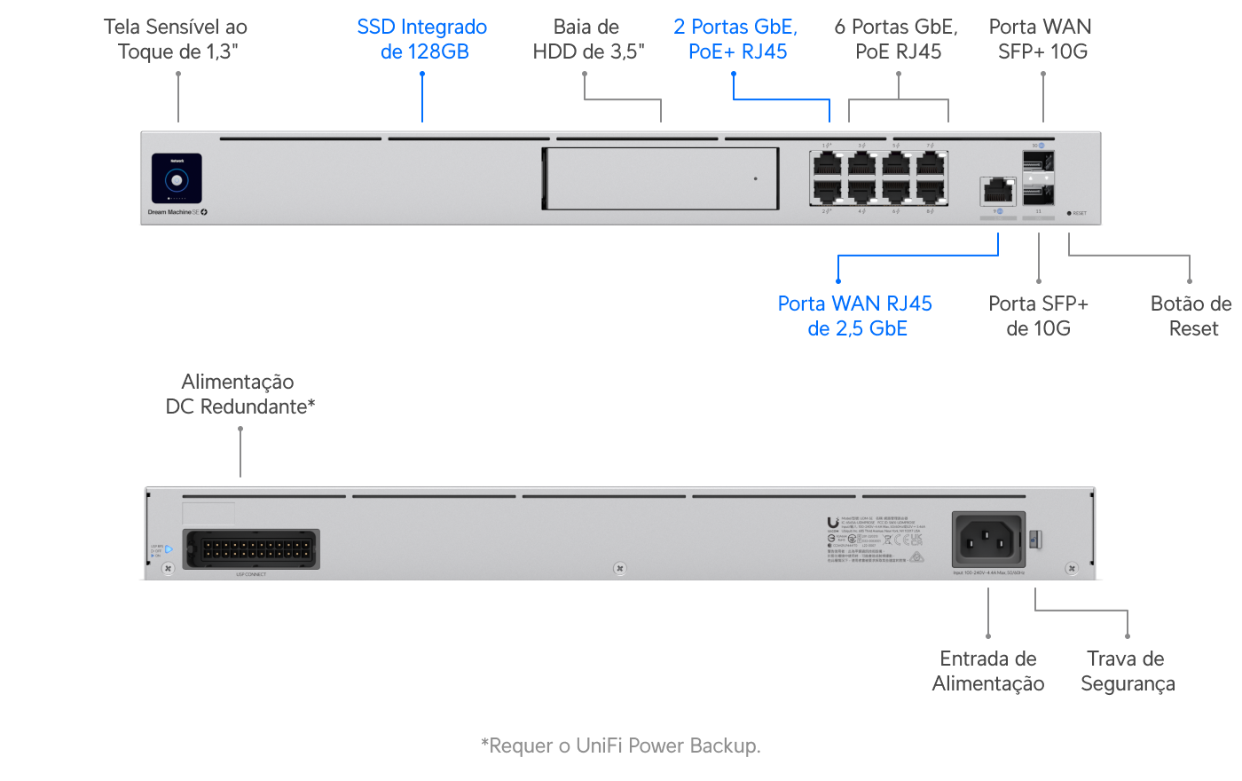 Dream Machine Special Edition (UDM-SE 180W) — Cloud Gateway 10G com suporte a mais de 100 dispositivos UniFi, mais de 1.000 clientes, roteamento IPS de 3,5 Gbps e comutação PoE integrada.