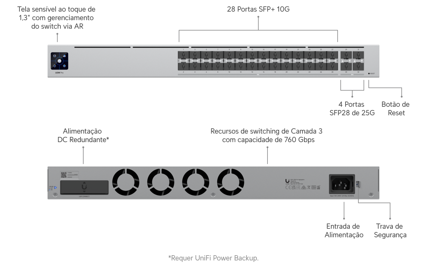 Um switch de Camada 3 com 32 portas, feito para conexões de alta capacidade SFP+ de 10G e SFP28 de 25G.