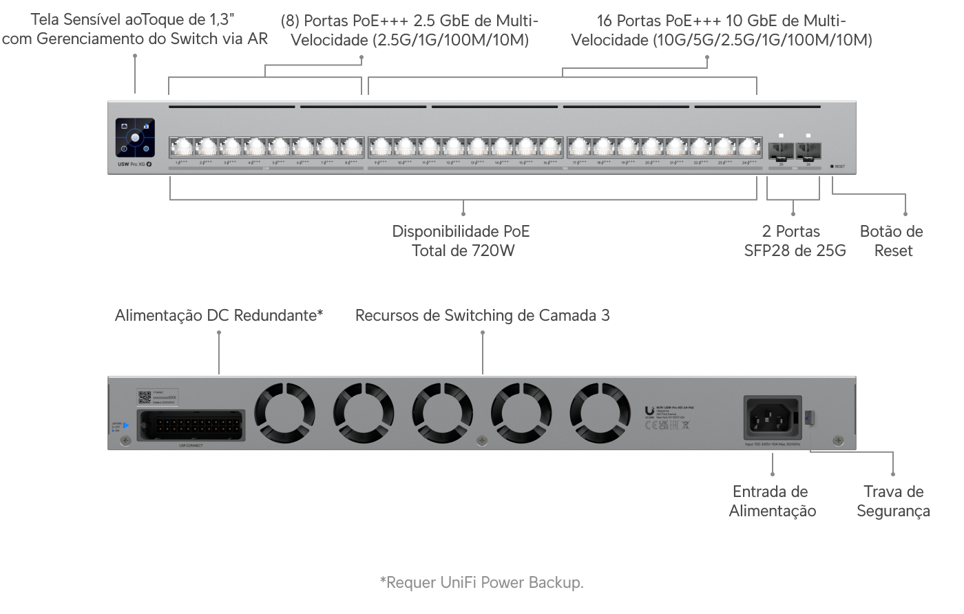 Switch Pro XG 24 PoE — switch da linha UniFi, ideal para redes de alta performance.