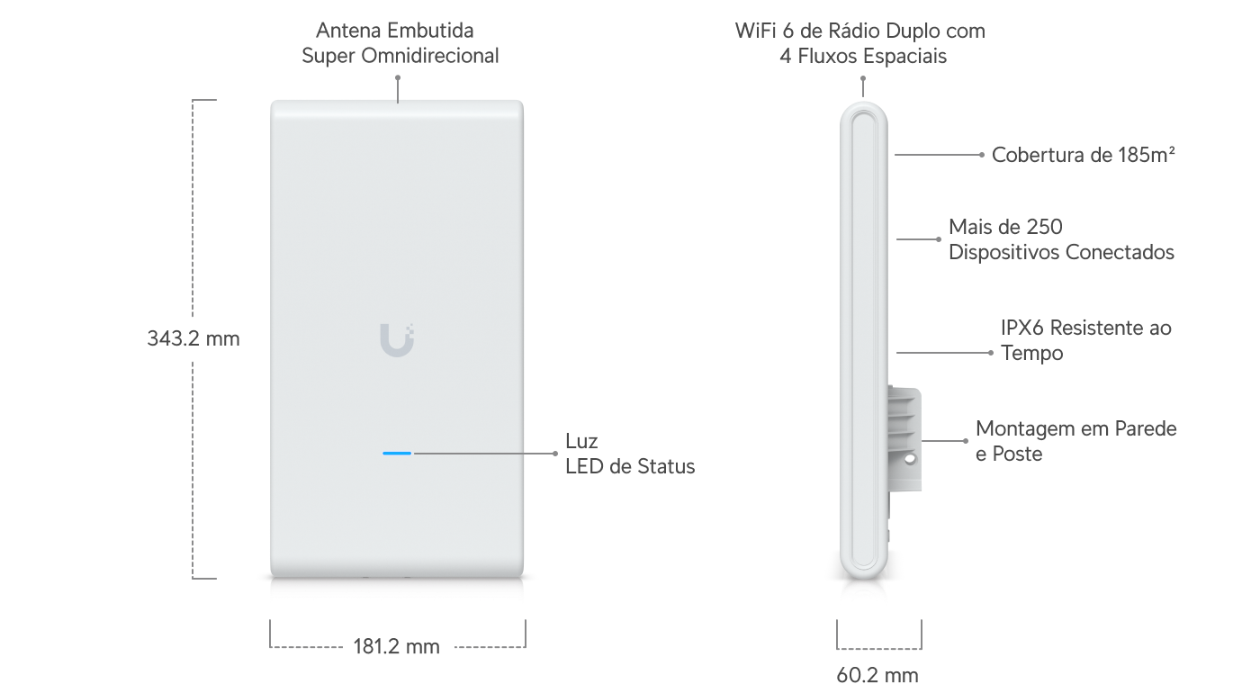 U6 Mesh Pro é um ponto de acesso UniFi da linha WiFi, ideal para redes corporativas e residenciais avançadas.