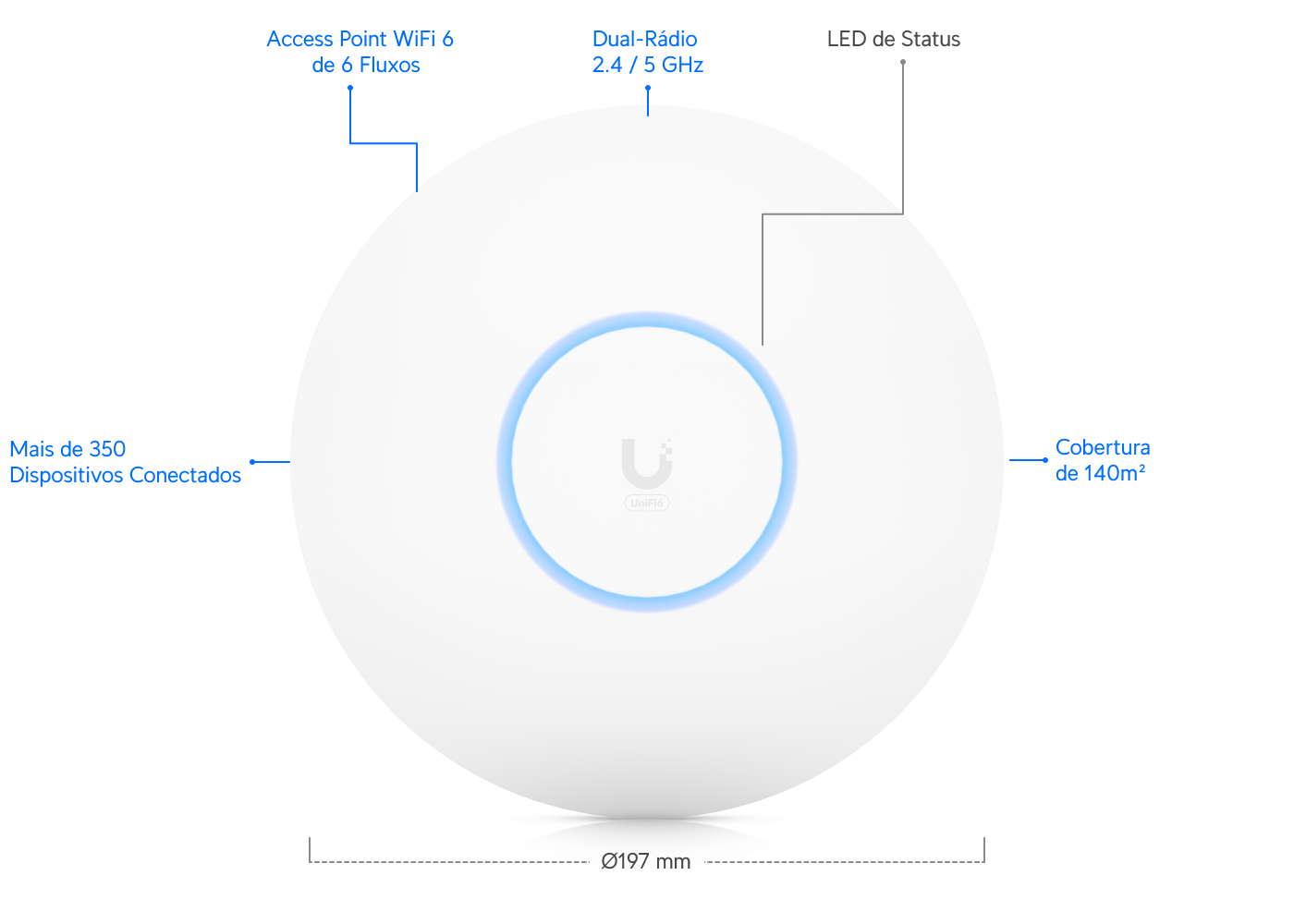 U6 Pro é um ponto de acesso UniFi da linha WiFi, ideal para redes corporativas e residenciais avançadas.