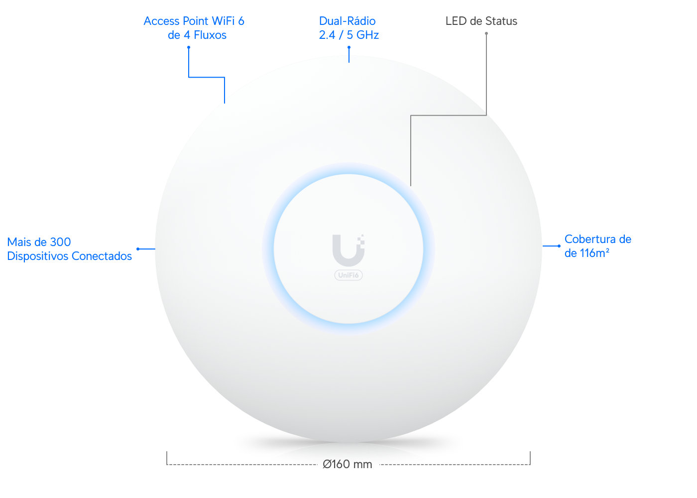 U6+ (U6-PLUS) é um ponto de acesso UniFi da linha WiFi, ideal para redes corporativas e residenciais avançadas.
