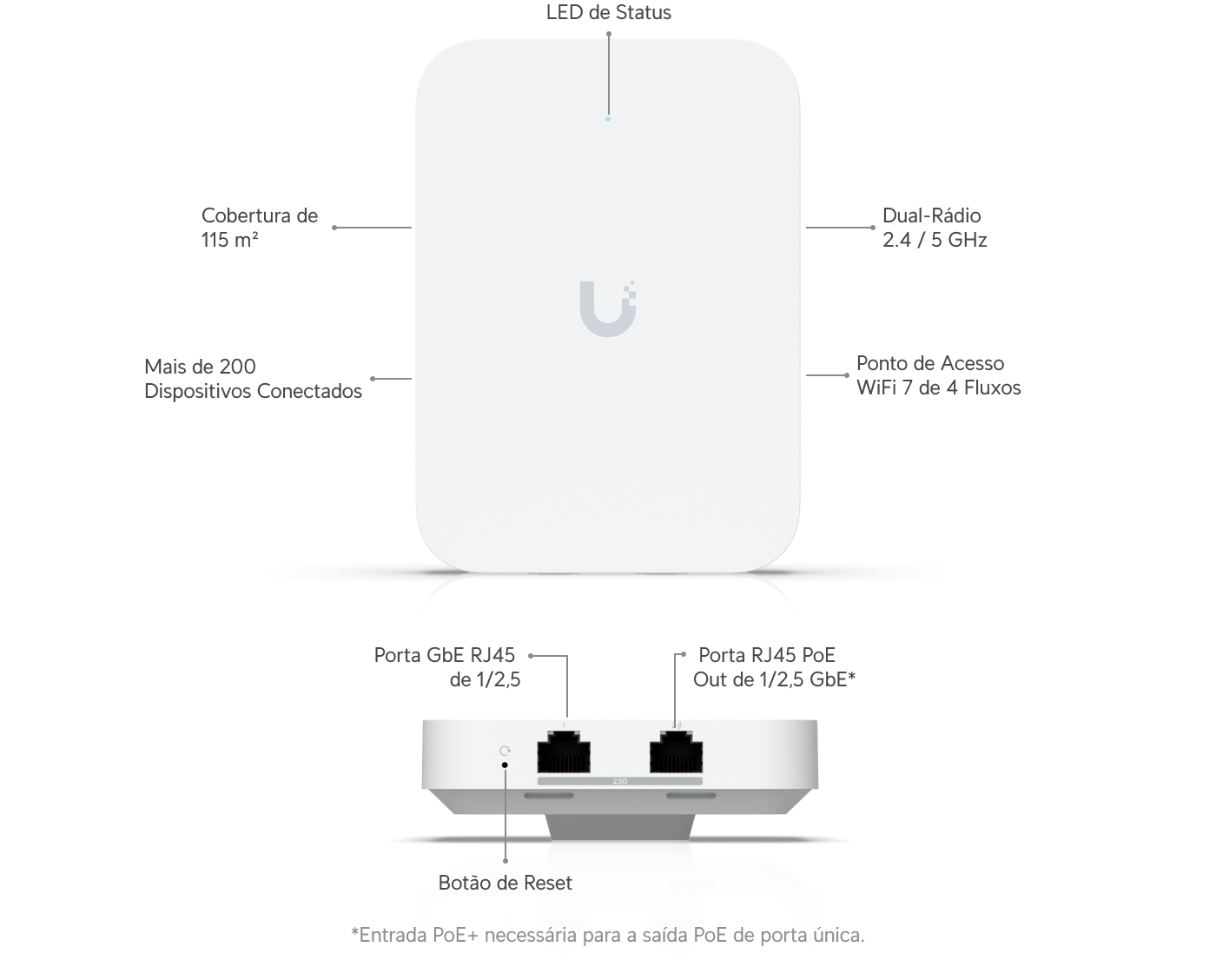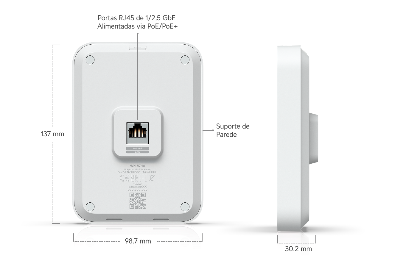 AP WiFi 7 In‑Wall (4 fluxos) com switch PoE integrado 2.5 GbE.